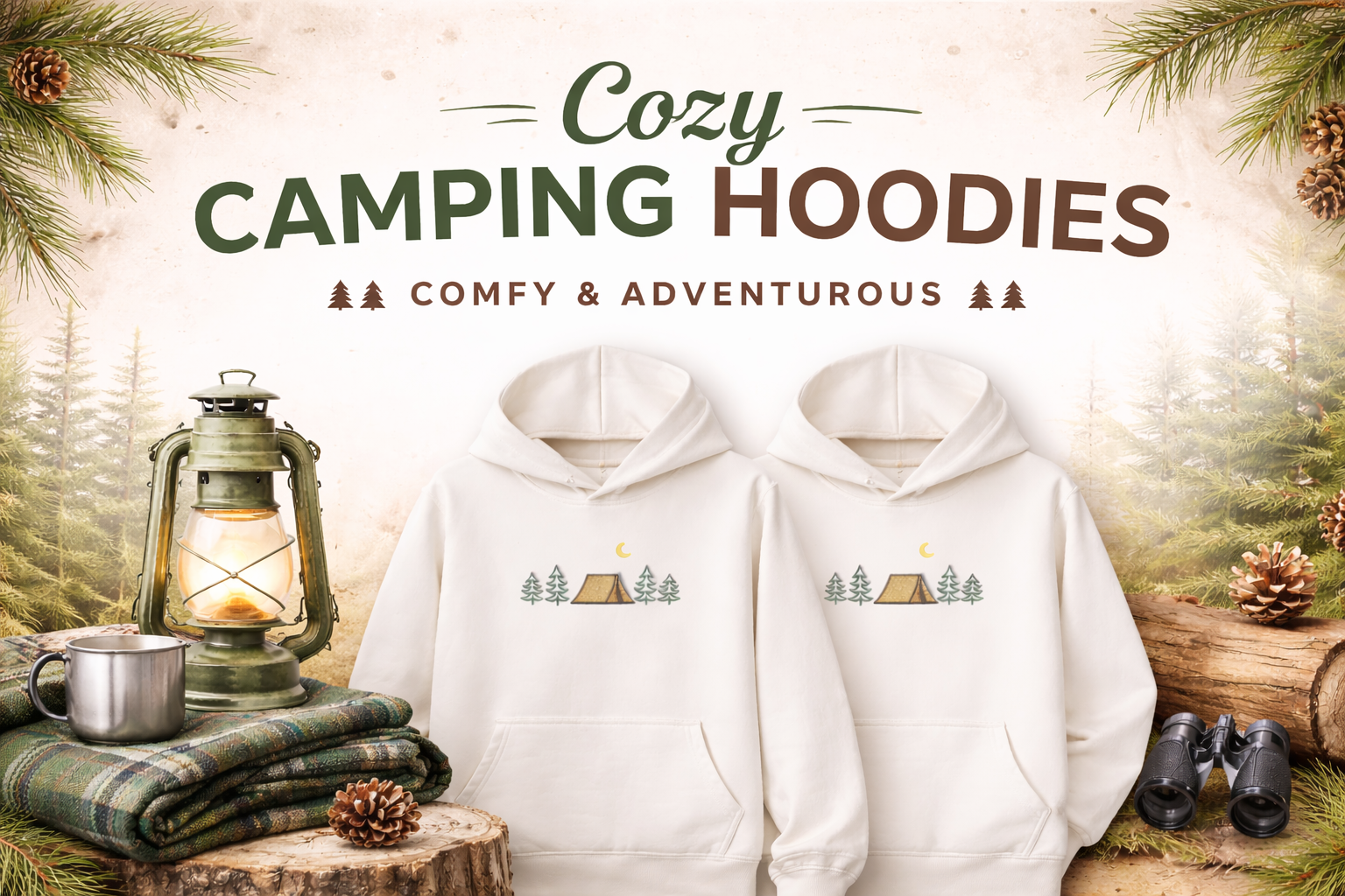 CLOVISX Nightfall Camp Embroidery Hoodie (Porcelain Ivory) – 380 GSM Heavyweight Fleece Unisex Pullover, 80/20 Cotton Blend, Kangaroo Pocket